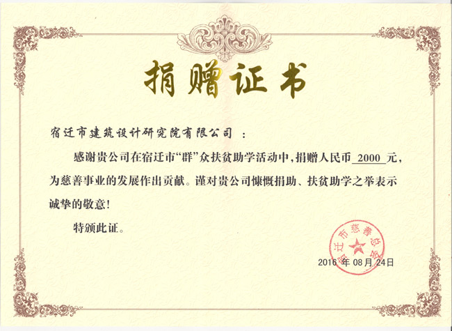 捐贈(zèng)證書